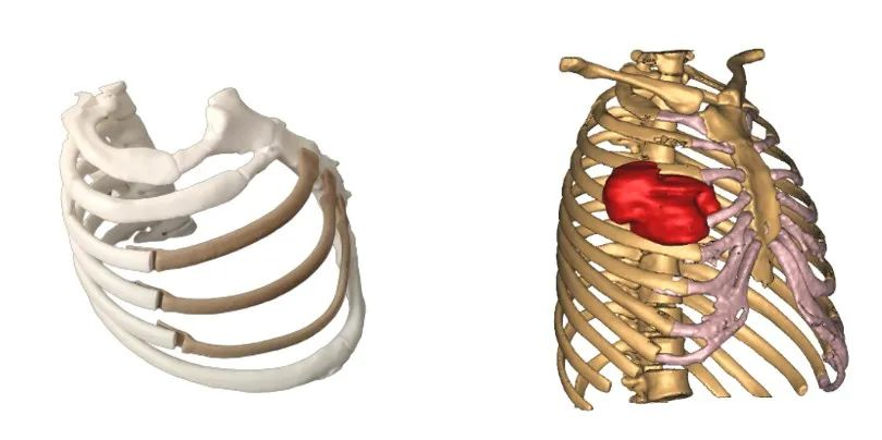 采用远铸智能FUNMAT PRO 610进行3D打印的PEEK胸肋骨植入物 (左图所示)